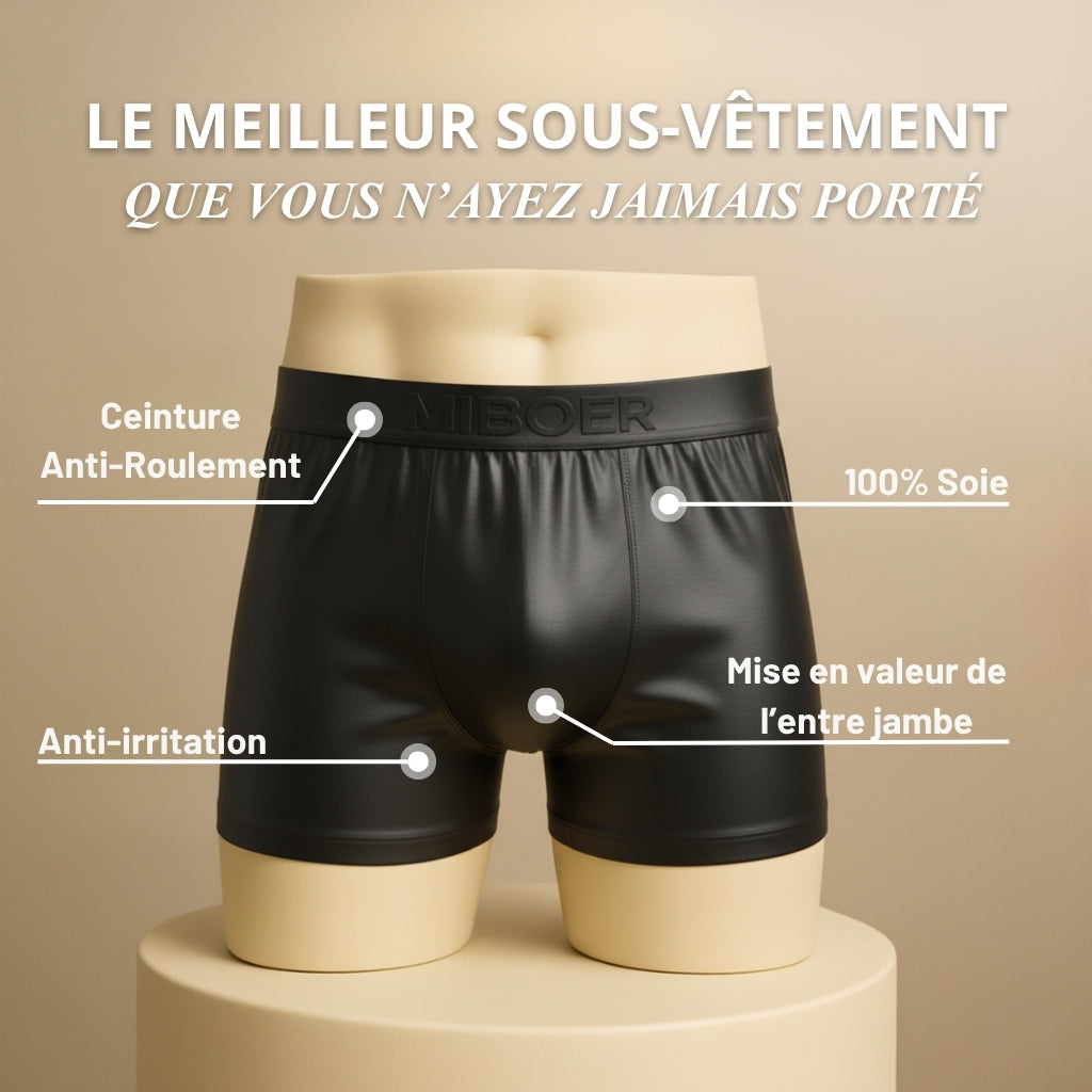 Nous avons créé Miboer pour les hommes qui en ont assez des boxers qui remontent, retiennent la chaleur et s'usent vite. Nos boxers 100 % soie sont doux, respirants et conçus pour accompagner vos mouvements. Une seule utilisation suffit. Et oui, notre pochette technique sublime votre silhouette, vous offrant une allure masculine et assurée qui ne passera pas inaperçue.